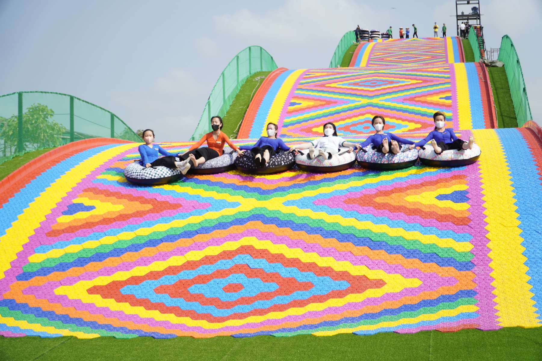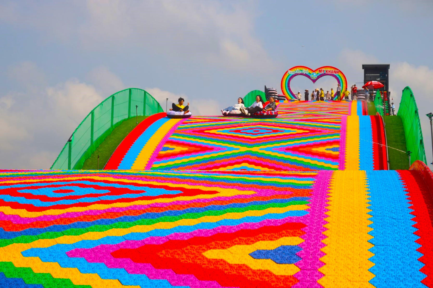 2. Quẩy banh nóc với “Thảm trượt cầu vồng” tại làng du lịch Mỹ Khánh