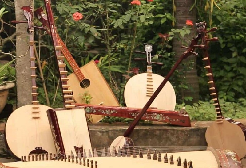 Instruments are the soul of Đờn Ca Tài Tử. Traditional ensembles often include the đàn kìm (moon lute), đàn tranh (zither), đàn tỳ bà (pear-shaped lute), and đàn tam (three-stringed lute) — each adding its own flavor and emotional depth. The bamboo flute lends soft, flowing melodies that echo the gentle rhythm of the Southern rivers.