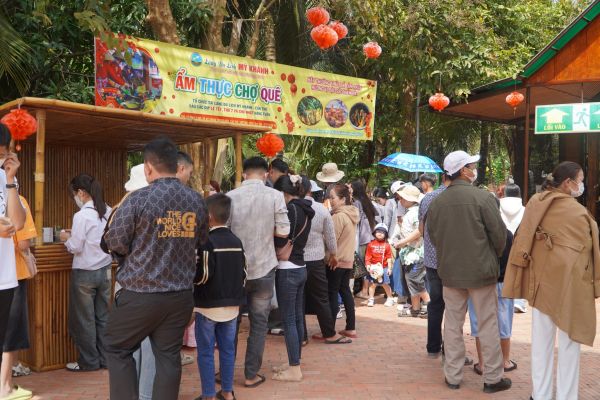 Du khách từ khắp nơi cùng nhau dạo bước, chụp ảnh, tham gia các hoạt động vui chơi, thưởng thức ẩm thực đặc trưng của miền Tây. Không khí ngày Tết nơi đây vô cùng náo nhiệt, rộn ràng tiếng cười, sự sum vầy của gia đình và bạn bè, mang lại cảm giác xuân tràn ngập, ấm áp trong lòng mỗi người.