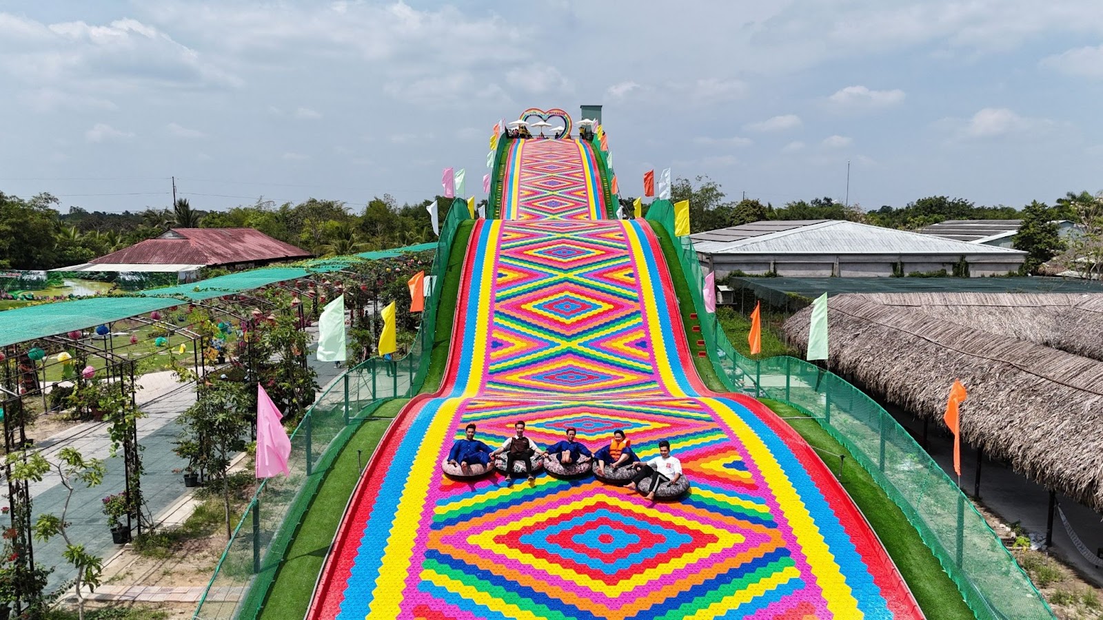 The Dry Tube Slide at Mỹ Khánh offers an exhilarating experience for thrill-seekers. Standing 20 meters high and stretching 160 meters long, it lets visitors zoom down at thrilling speeds, bringing bursts of excitement and laughter.