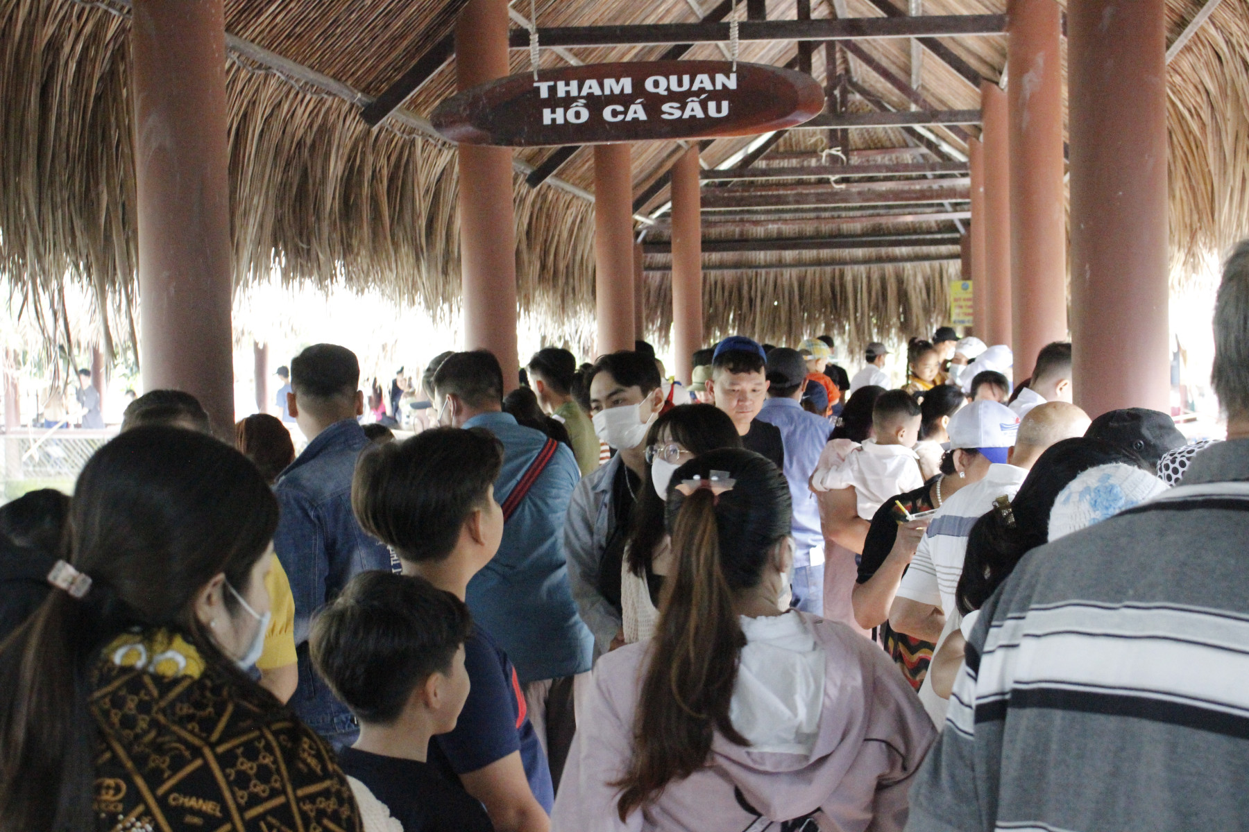 Du khách tham hồ cá sấu tại Làng du lịch Mỹ Khánh