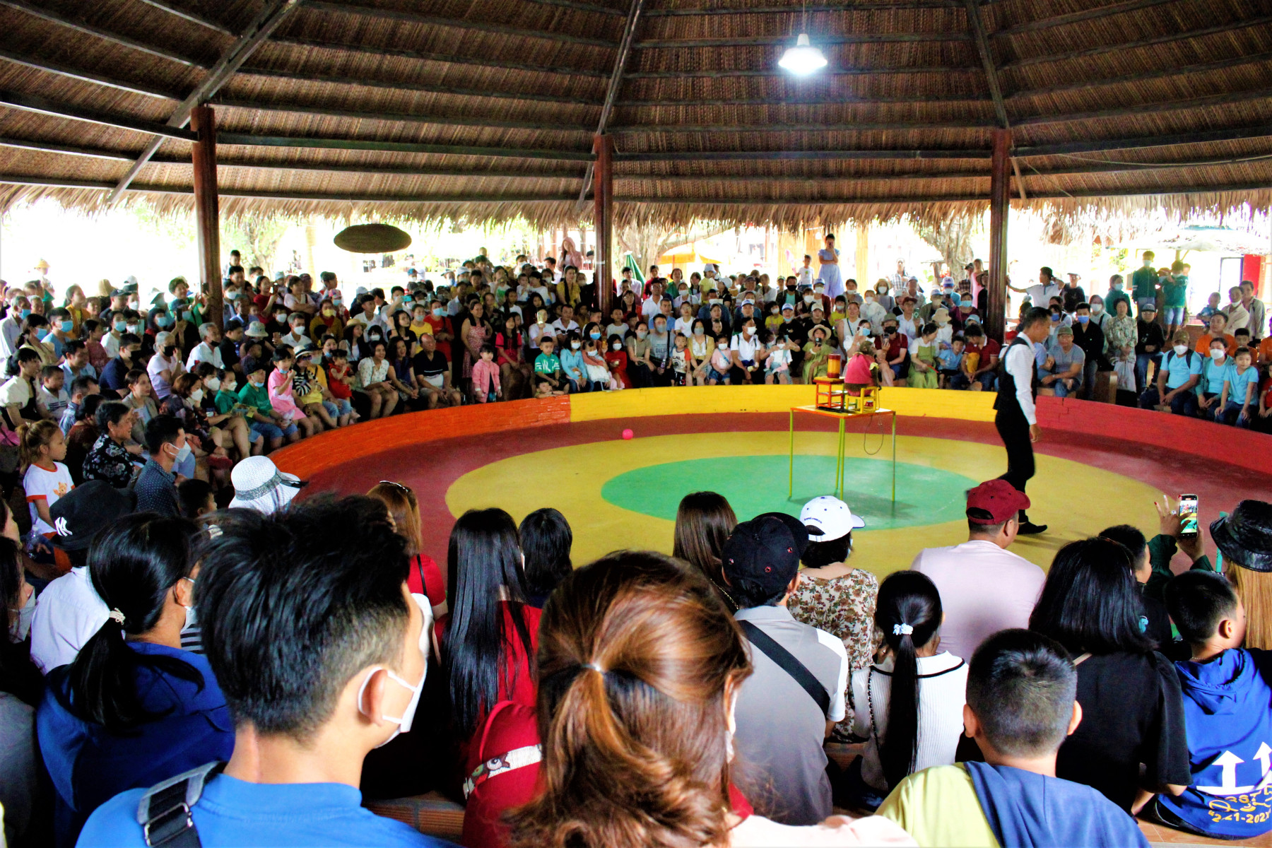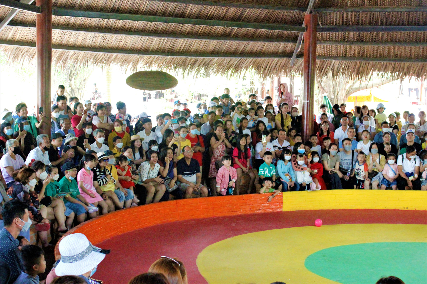 Du khách tham dự tiếc mục xiếc khỉ nghệ thuật tại Làng du lịch Mỹ Khánh