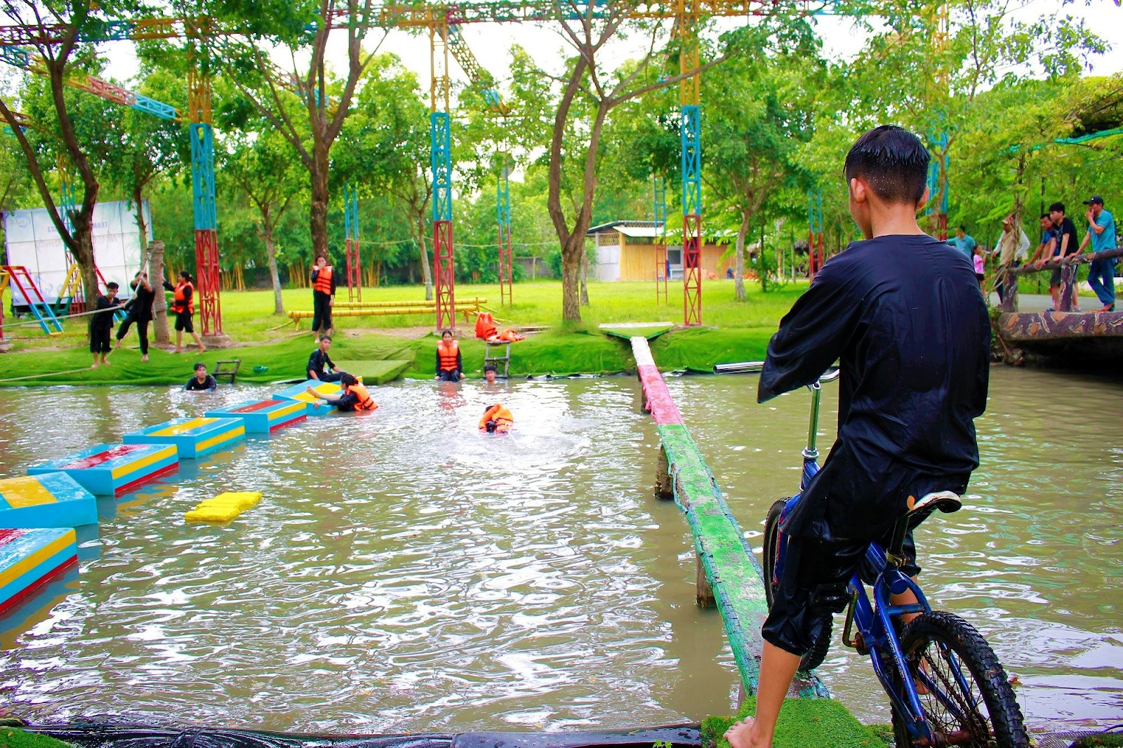Đến với khu trò chơi dân gian các bạn sẽ không thể chối từ bởi độ hấp dẫn mà các trò chơi mang lại, không chỉ là trò chơi trên cạn mà còn các trò chơi dưới nước đầy lầy lội, thú vị.